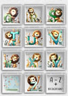 26 adorable lions with zoo animal friends, all letters of the alphabet. Each letter is different. A-Z