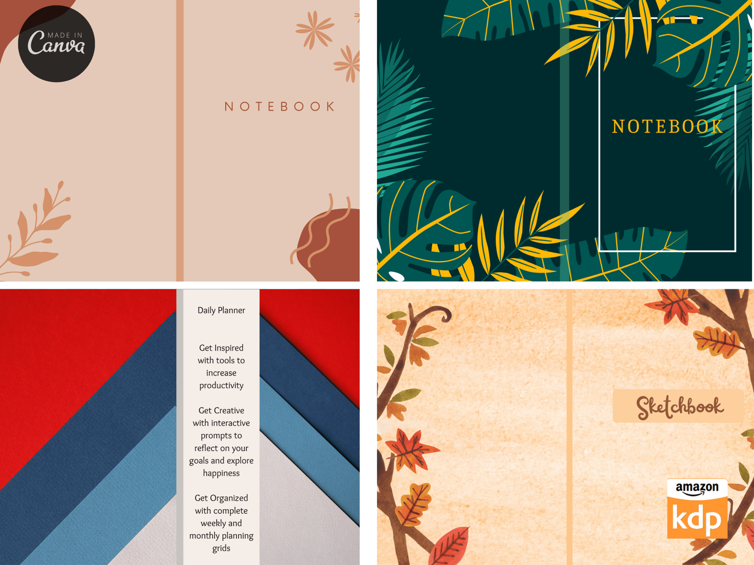 This is a complete cover bundle to be used to create all types and niches of high quality journals, notebooks, low content books, Logbook, Workbooks, composition notebook on Amazon KDP (Kindle Direct Publishing).