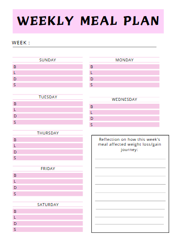 I hope this planner assist in your journey to weight loss/gain and to a healthy diet overall.