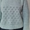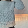 Yuriko is a raglan pullover, knitted top down in the round with it a folded neckline, and short rows to raise the bac. The yoke is shaped with increases along each raglan seam, then sleeves are separated from the body and stitches are added for each underarm. The body is knitted in the round straight with no shaping, and it has a simple lace motif for the majority of it and a ribbed hem. The sleeves are knitted in the round shaped with decreases, and they have a band of the same lace motif as the body before the ribbed cuffs