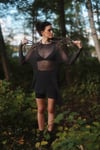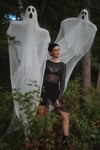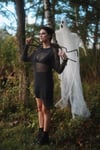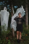 Say helloOoOoO to Spooky Season with this witchy knit. Oversized in a cloak-like fashion at a cobweb-like gauge, it is time to cast some spells and stir some cauldrons. Knit from the top-down with a big ruffle-like increase at the beginning, this garment makes for a mindless project with still delivering extreme DRAMA!