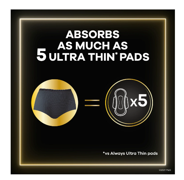 Always ZZZ Overnight Disposable Period Underwear for Women Size LG, 360° Coverage, 7 Coun
