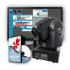 • Selección de 7 Gobos (propios del equipo dibujados) + Open + rotación de la rueda de Gobos + Shake de Gobos.