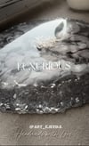 This one-of-a-kind coaster, measuring 13 cm in diameter and 1.5 cm in height, is a true work of art. Its delicate blend of white and gray shades, complemented by a golden centerpiece, resembles a luxurious flower blooming on an icy surface.
