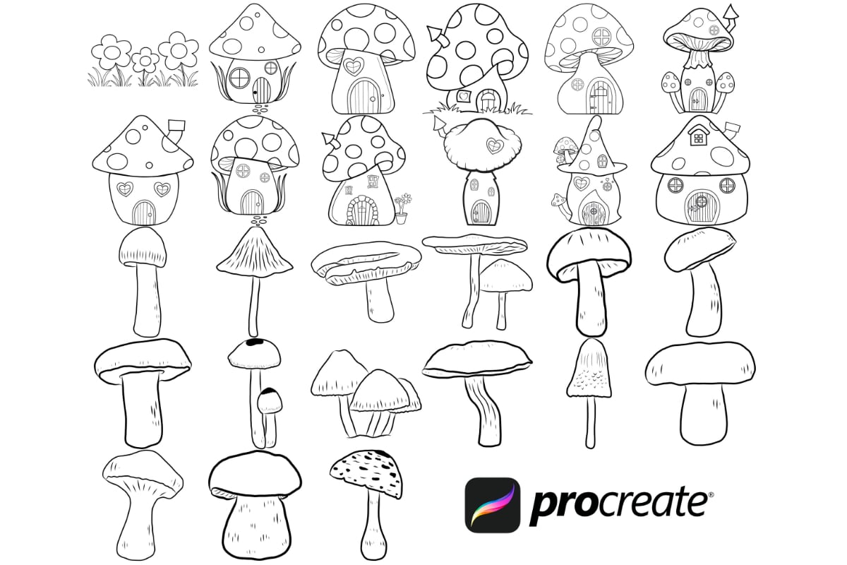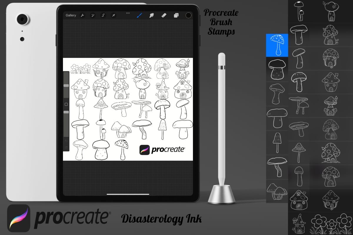 Procreate stamps save time when drawing, saving the effort of having to recreate the same thing for multiple designs and projects, save time on your design by purchasing these mushroom brush stamps so you can utilise that time on creating more beautiful art.
