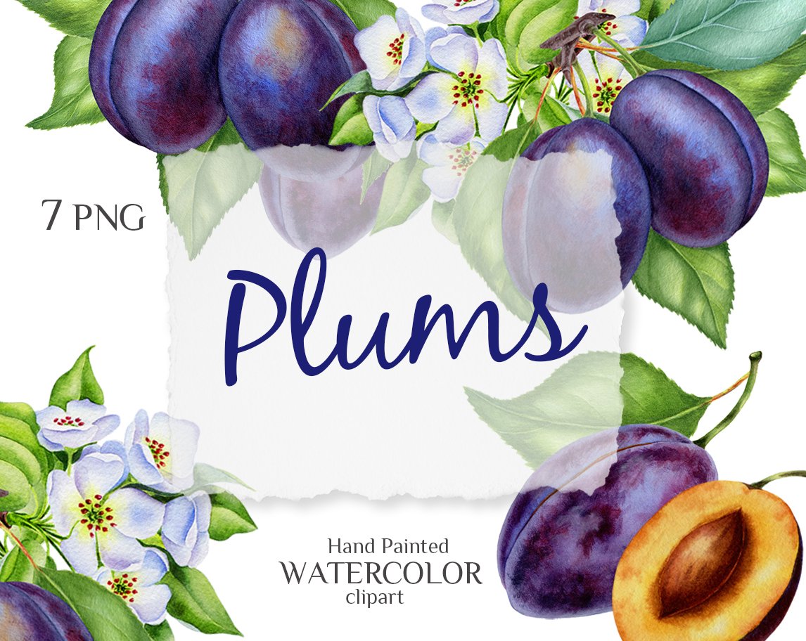 Watercolor hand-painted botanical illustrations. Digital clip art for personal and commercial use.