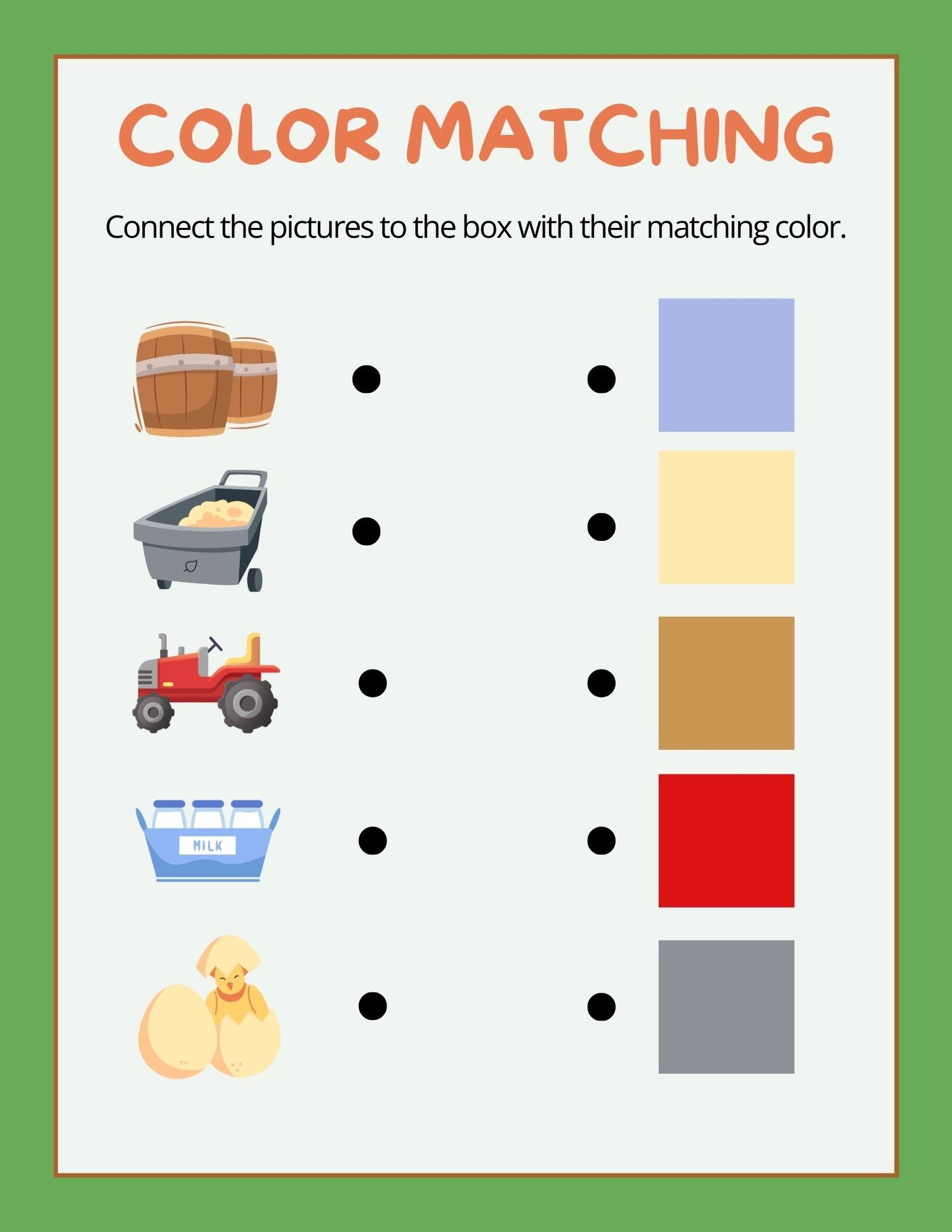 - Logic & Puzzles: Match the perfect tools to the farm jobs in our Tool Matching section, and reinforce visual recognition with colorful Color Matching activities.