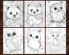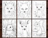 26 Forest Critters V2 Cute Animal Coloring Page Book, Adults + kids Instant Download Grayscale Coloring Page, Printable PDF Squirrel, Fox