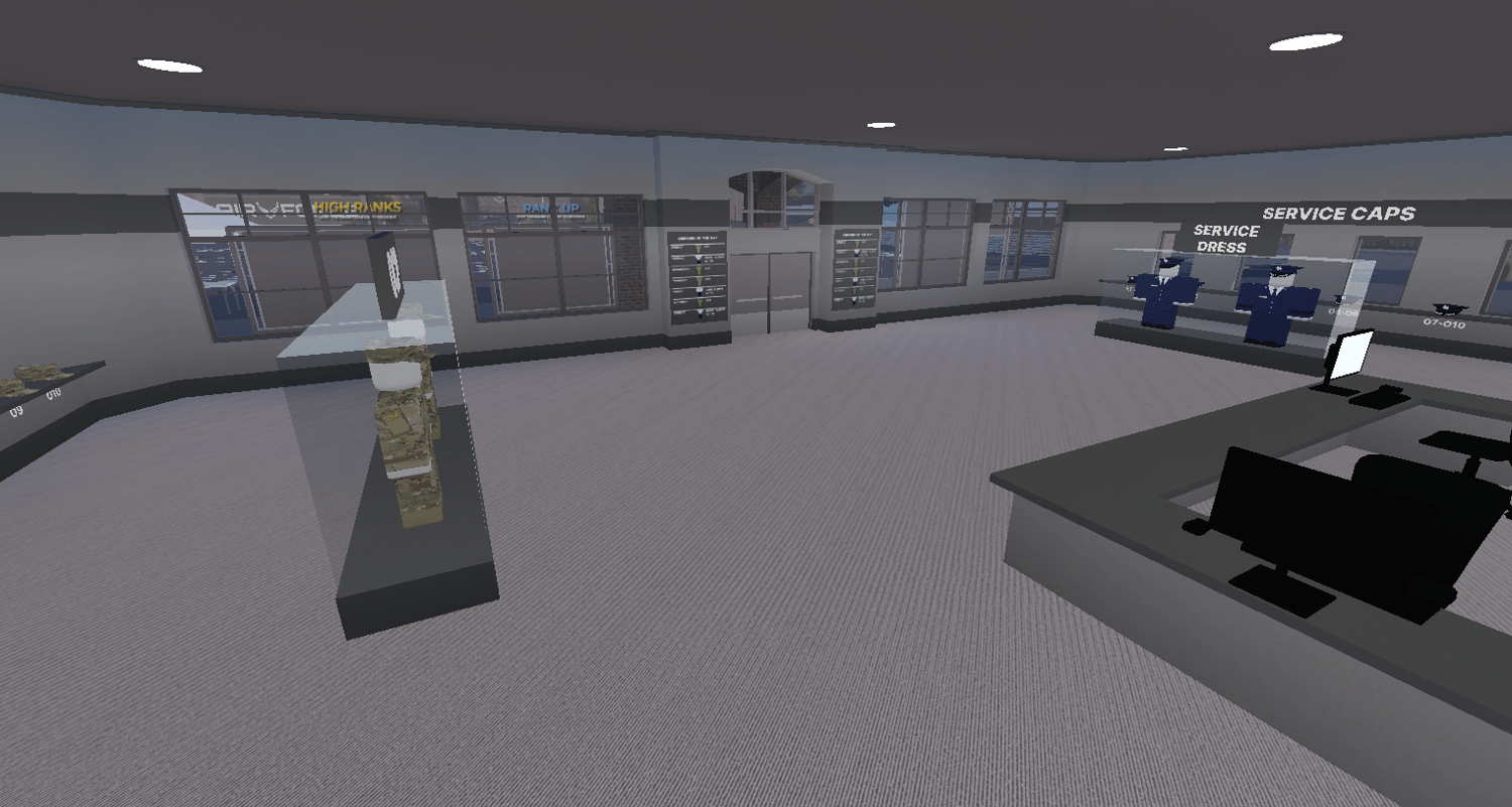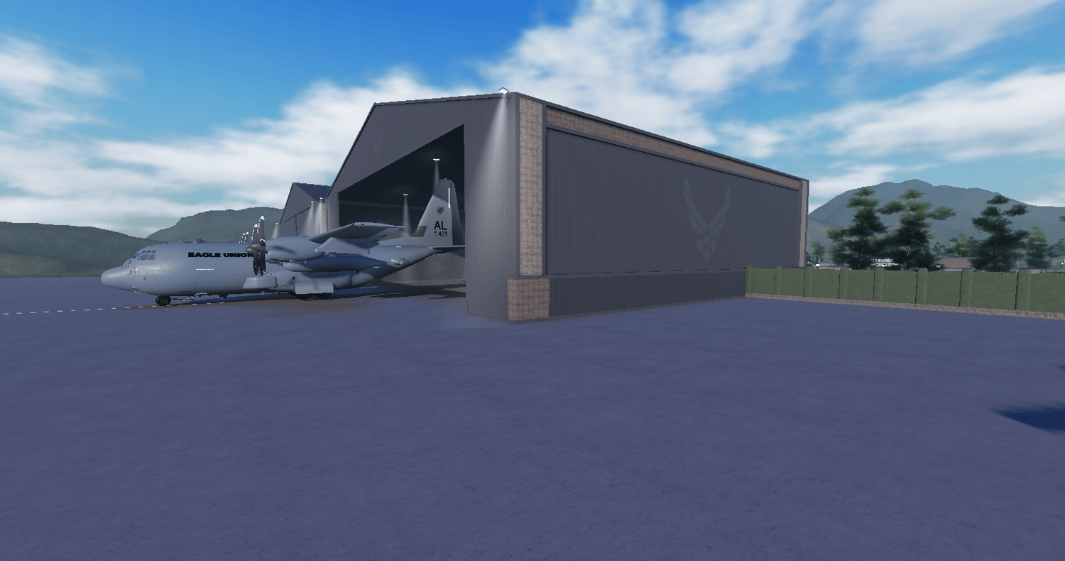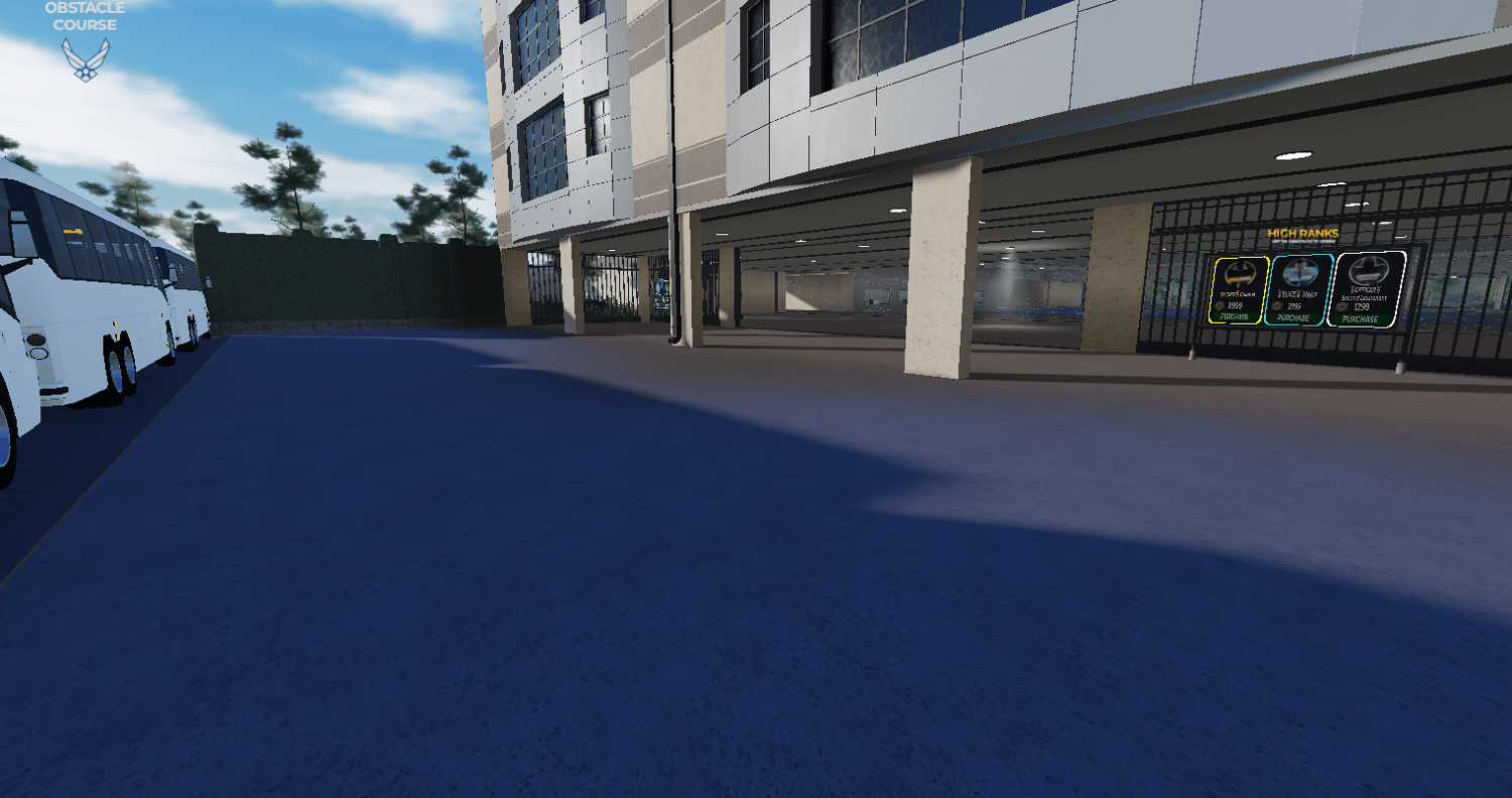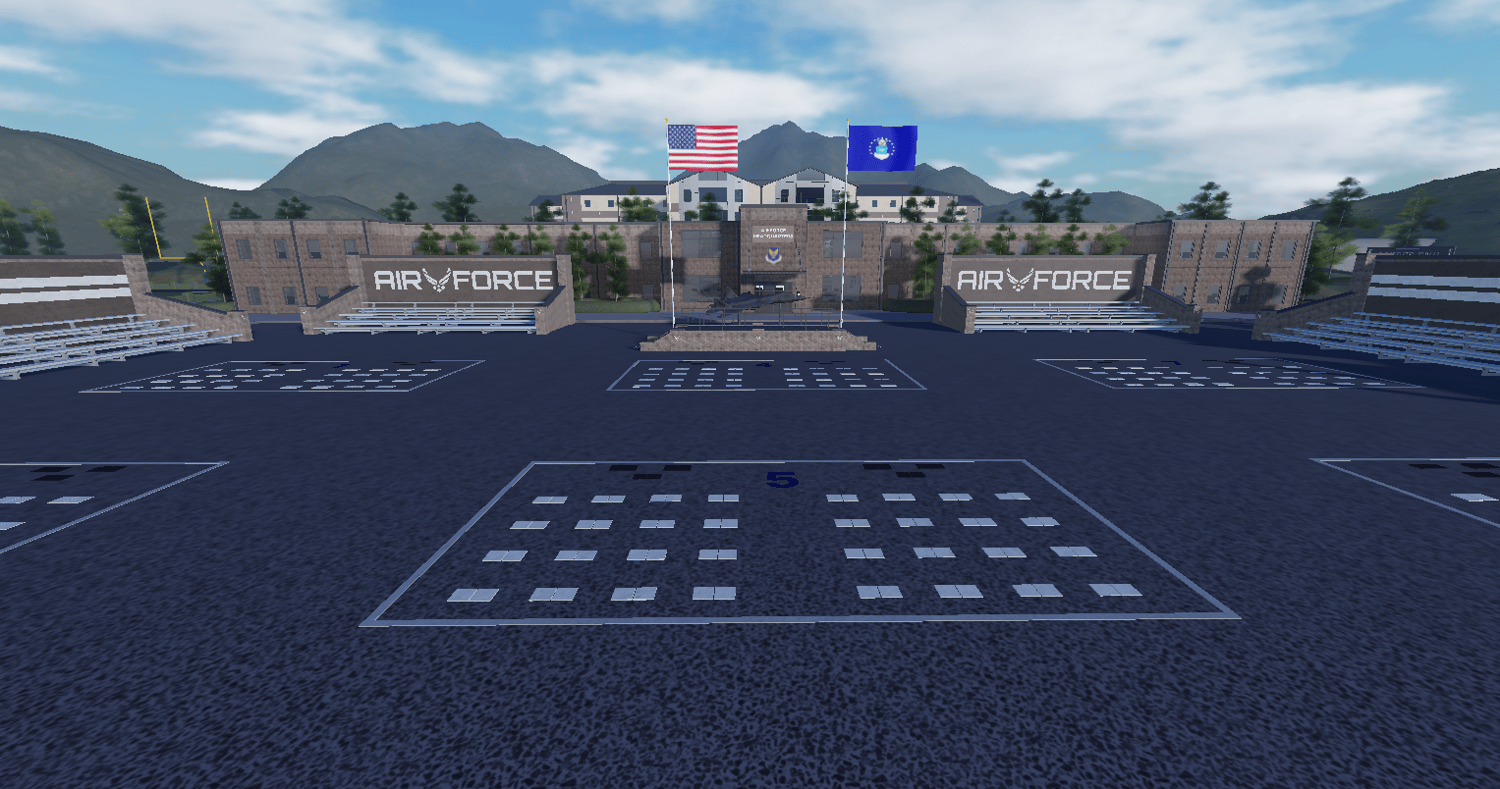 Uniform Rooms, Headquarters, Classrooms, Runways, ATC Tower, PVP combat area, main gate, Military Police Building (with jail), Recruitment center, Drill Pad, animations, Hangars (With working helicopters and airplanes), Basic Training Spawn