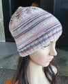 This 4ply family Beanie, with optional pom pom, has a 2x2 rib brim then is worked in easy stocking stitch. Let the yarn do its’ thing to create the beautiful striping and fair isle design for you – but feel free to take the credit as though you did that fancy work yourself!
