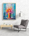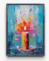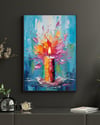 This piece is a symphony of vibrant colors and expressive brushstrokes, creating a sense of peace and tranquility. The candle's flame, rendered with a soft luminescence, symbolizes hope and renewal, making it a perfect addition to any room seeking a touch of serenity.