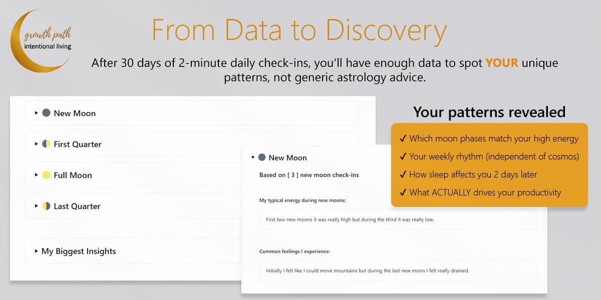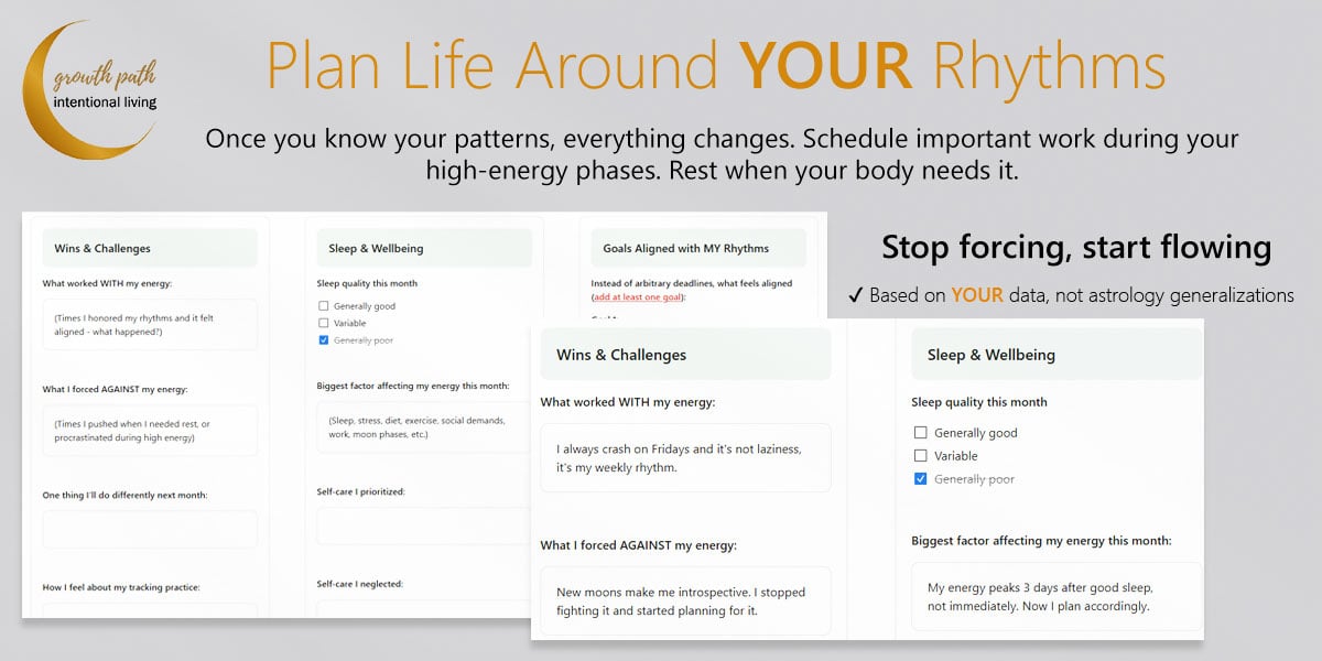 🌙 Lunar Cycle Tracker helps you discover YOUR unique energy patterns by tracking how you feel during different moon phases.