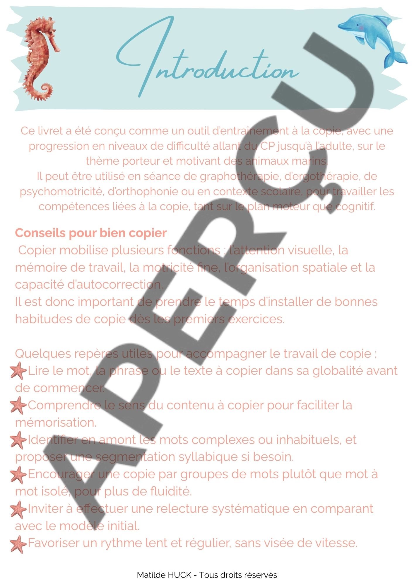 ✨ Découvrez le Livret Stratégies de Copie – Animaux Marins ✨