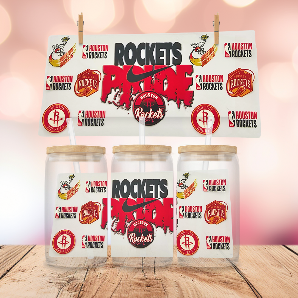 Blast off with bold team spirit using the Rockets Pride Basketball Wrap! Designed to fit 16 oz Libbey glass cans or tumblers, this wrap features striking Houston Rockets–inspired graphics in signature red, white, and gray. Whether you're lighting up the court or watching from the sidelines, this wrap adds a launch-ready look to every sip.