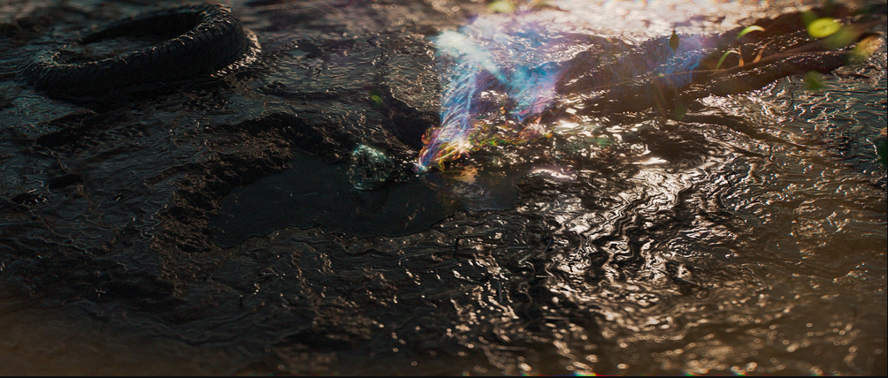 A very muddy R&D. This one has heightfields, vellum, flip fluids, and some sticks and branches to tie it all together. Also someone dropped a tyre there a while ago. Also there are some legs walking around looking like a Pink Floyd album cover.