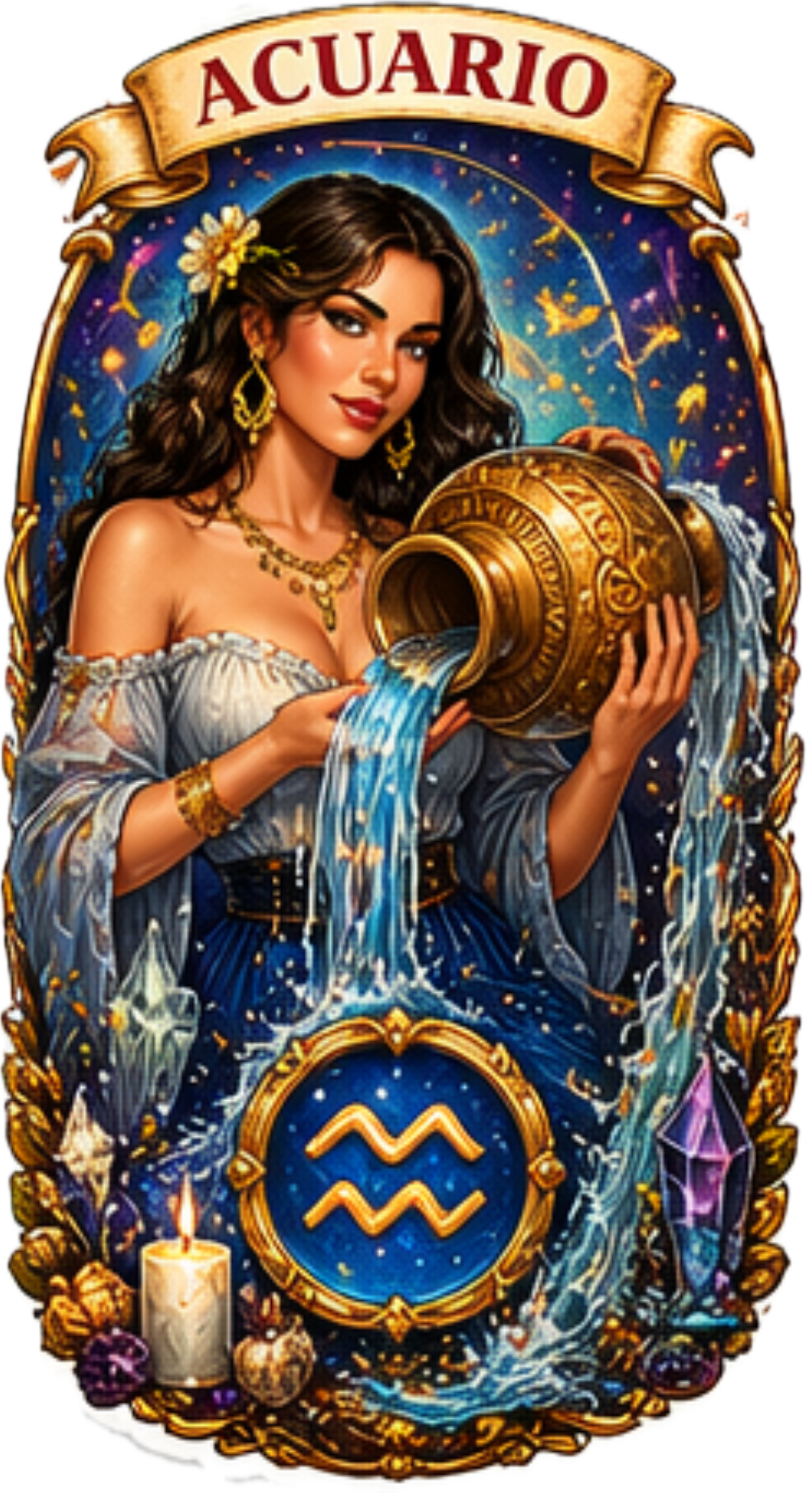 Acuario Latina Zodiac -What you get : High-quality zodiac sticker designs Rich, detailed artwork with a cohesive style Perfect for digital planners, social media, prints, or personal use.