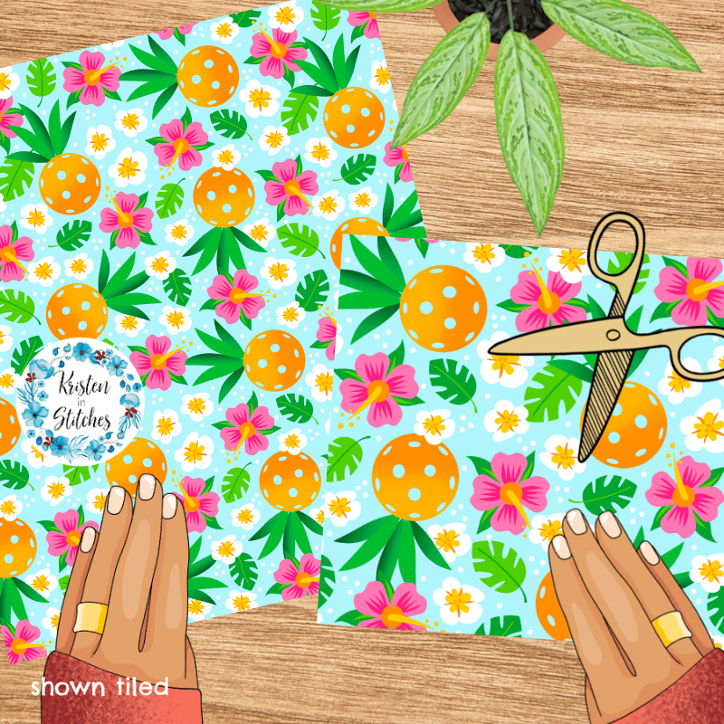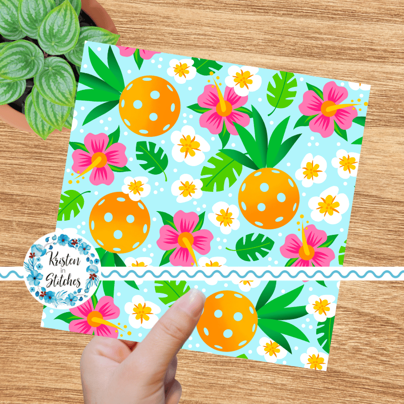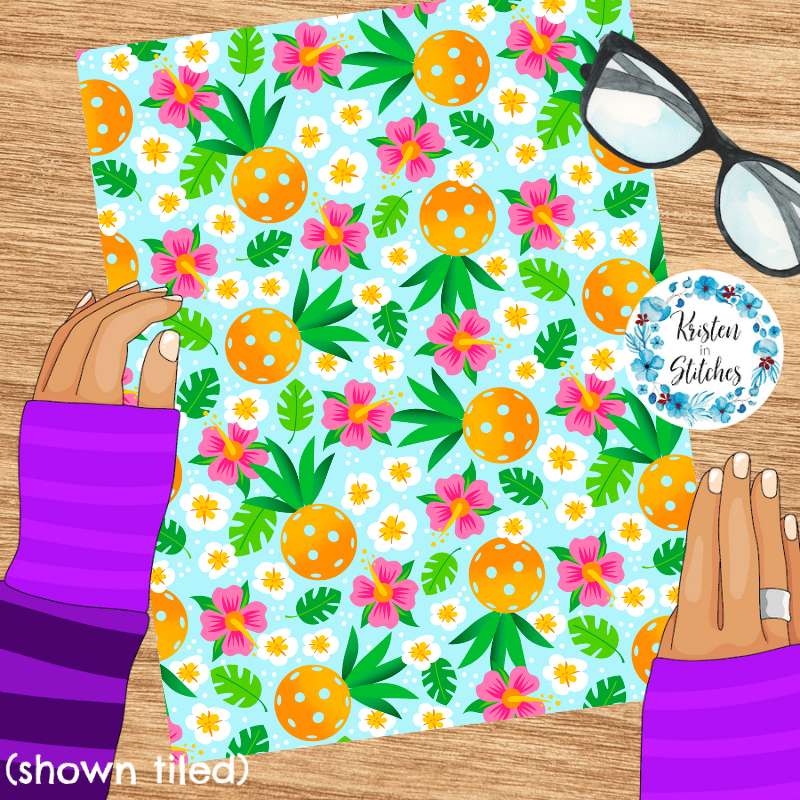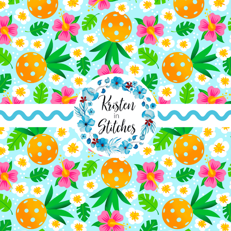 Pineapple pickleballs with tropical flowers.