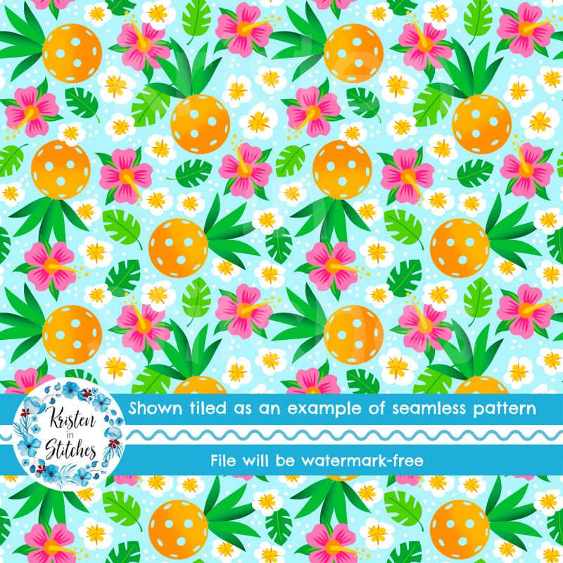 Tropical Pineapple Pickleball Seamless Pattern, Paddles and Balls