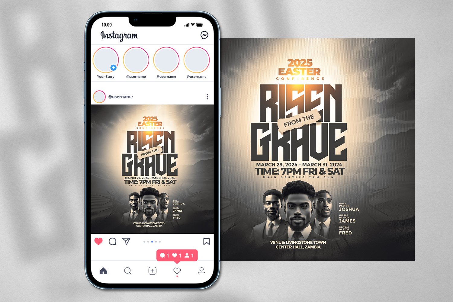 Our templates are meticulously crafted with attention to detail, ensuring that your Easter conference announcement stands out. Featuring a sleek and modern design, they are perfect for services of all kinds.