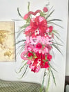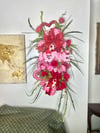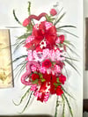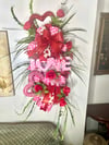 Make a bold and beautiful statement with this handcrafted Fetching Love Valentine décor piece, designed to capture hearts at first glance. Featuring layered glittered hearts, vibrant red roses, lush greenery, and luxurious heart-patterned ribbons, this piece radiates romance, elegance, and festive charm.