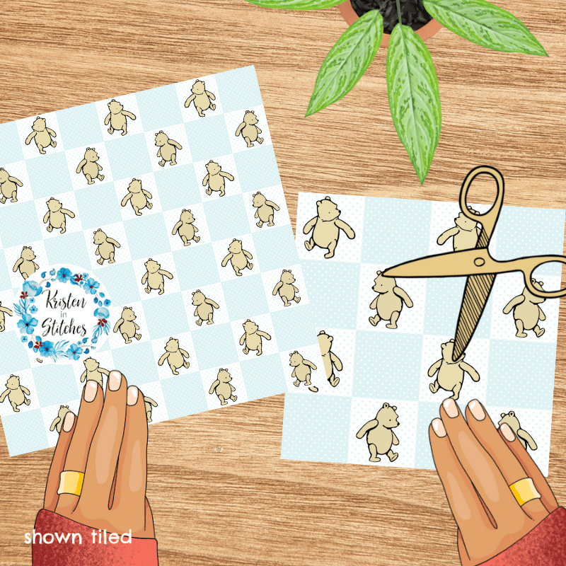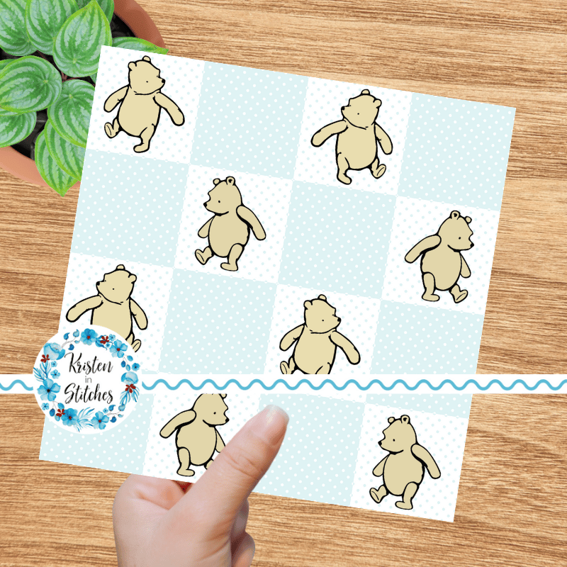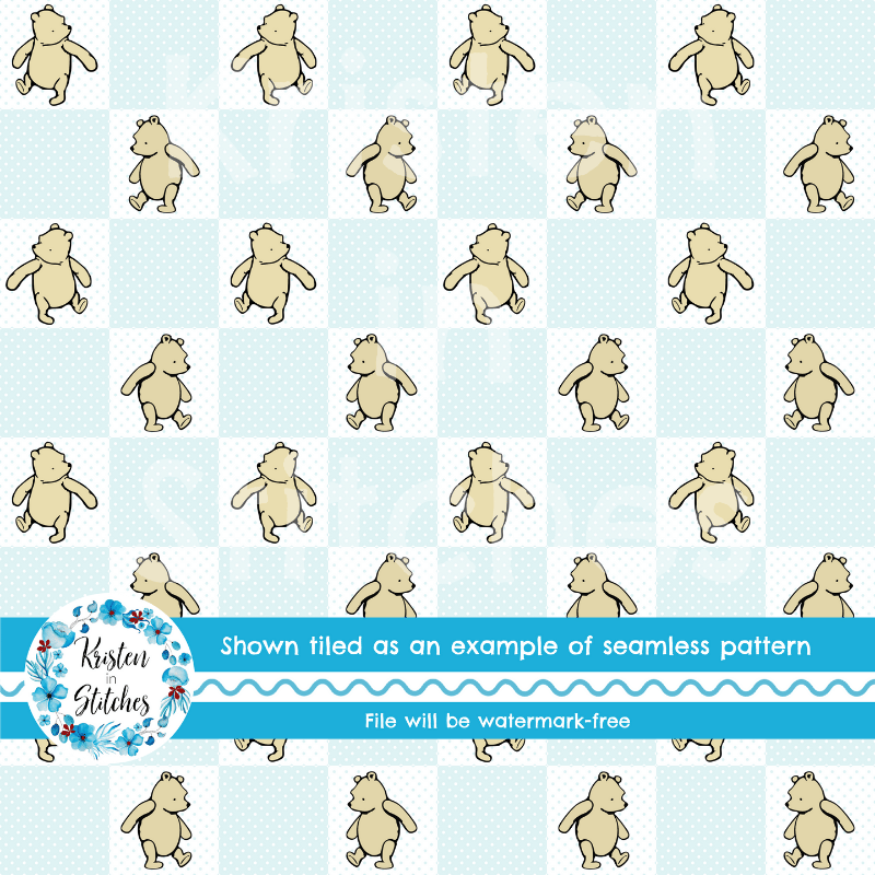 Classic Winnie the Pooh Nursery Patchwork Seamless Pattern Baby Blue