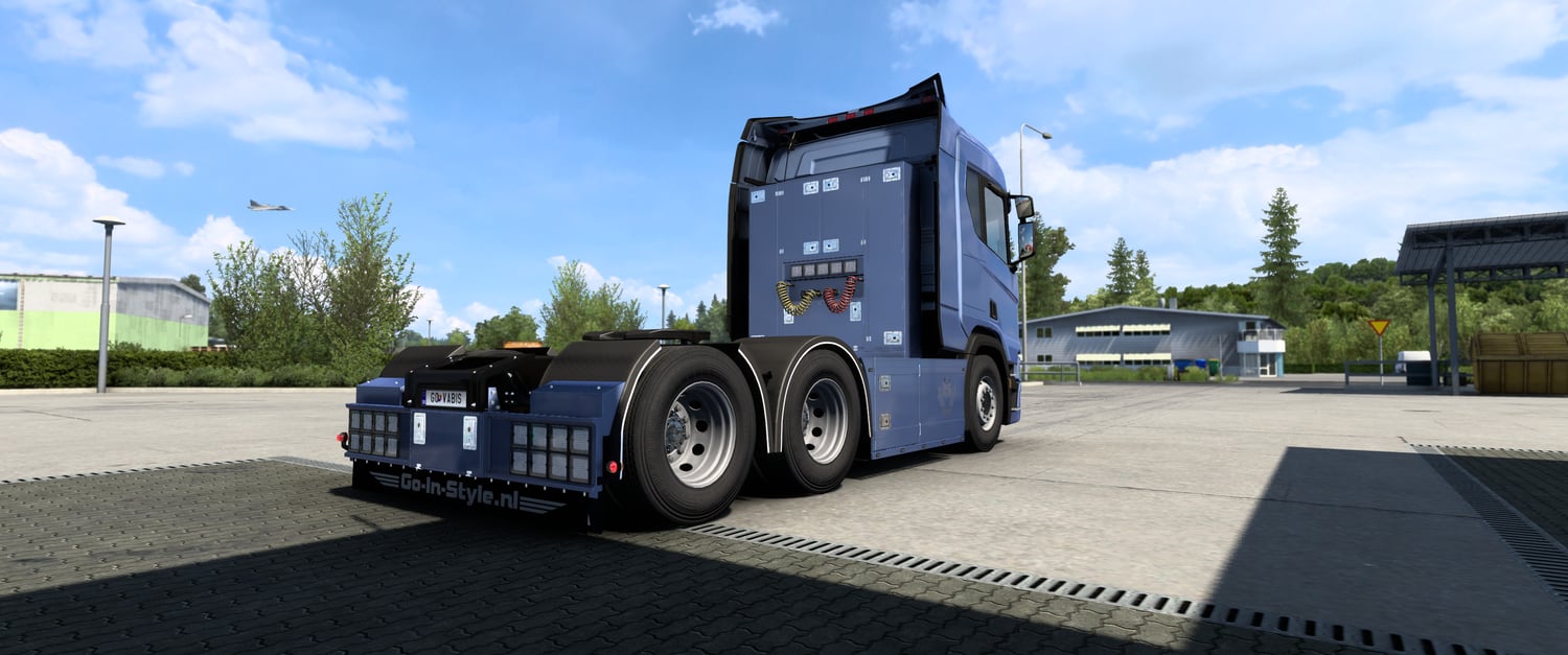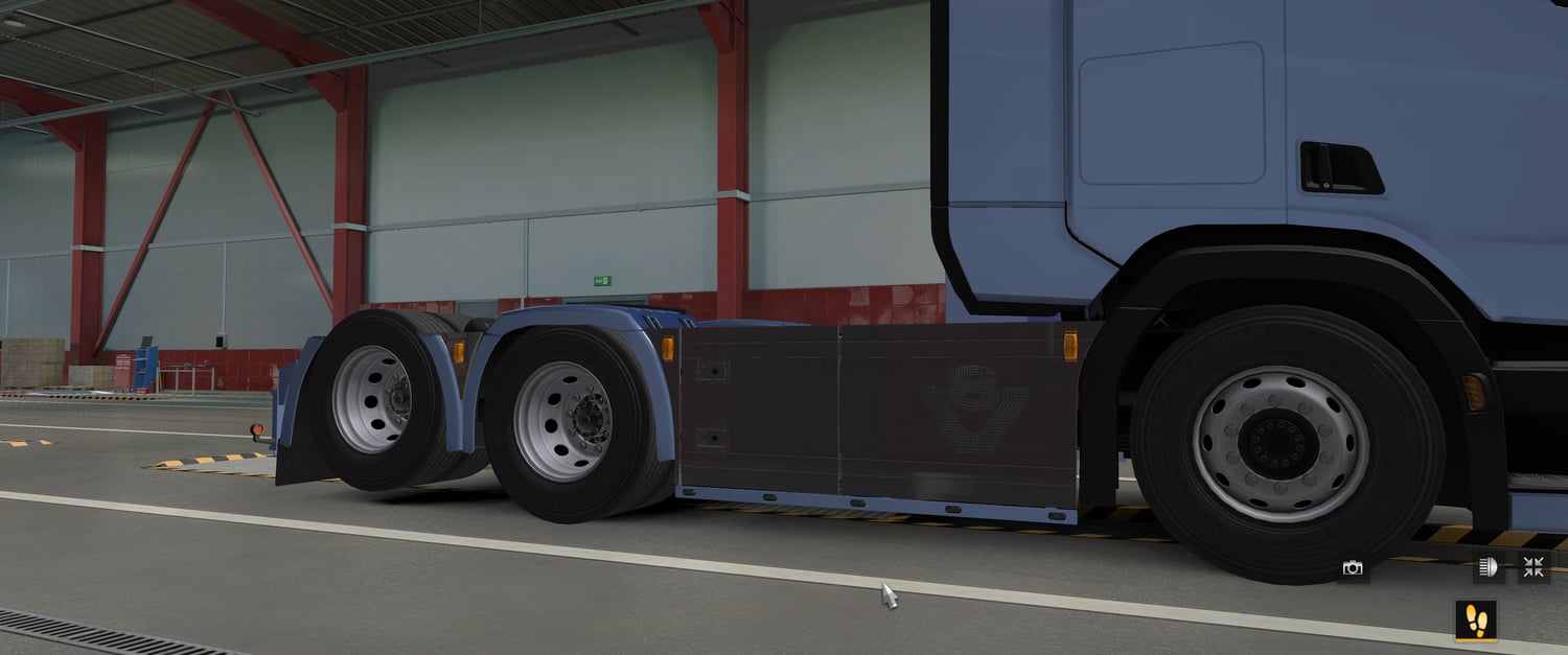 MOD description: painted and chrome V8 sideskirts only for 6x2, 6x4 long chassi trucks (scania nextgen original)