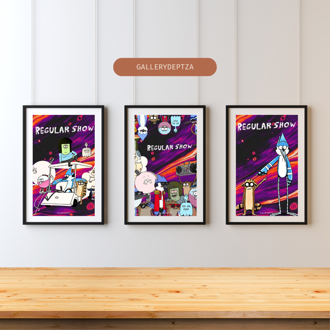- 🎨 3 unique trippy Regular Show-inspired posters