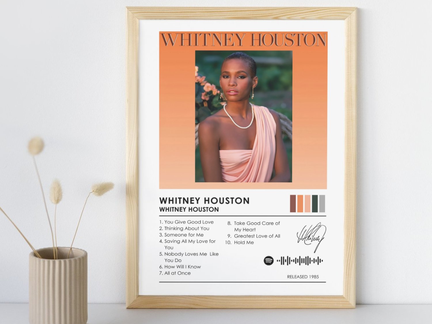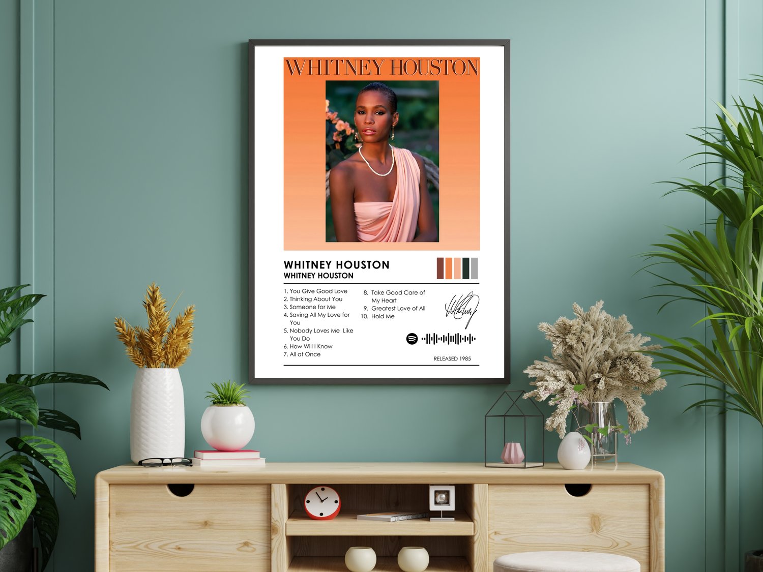 This Whitney Houston – Whitney Houston printable poster also makes a beautiful gift for fans of legendary vocalists, collectors of classic album art, or anyone who appreciates music-inspired home décor.