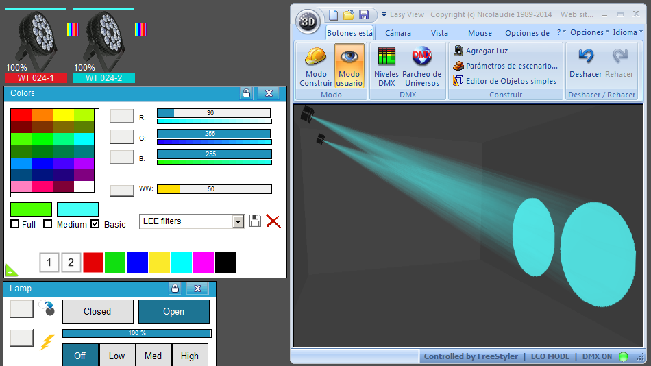 Esta Librería SSL2 está optimizada para trabajar con Magic 3d Easy View. Es decir para ver una representación 3D de las secuencias que estemos realizando con Freestyler, QLC+ o cualquier otro soft que se conecte con Magic 3d.