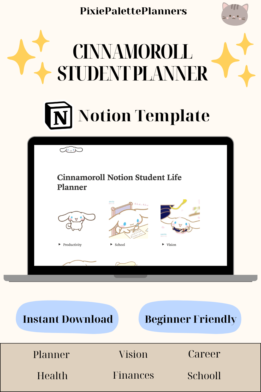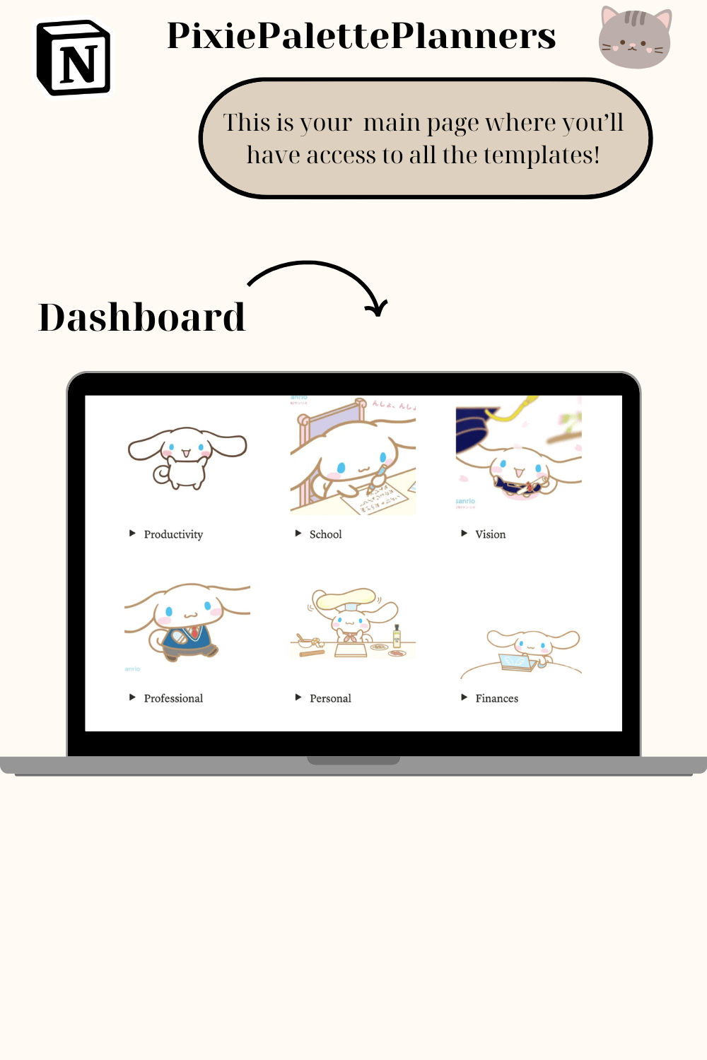 Most kawaii digital planners give you a cute cover and call it done. This Cinnamoroll Notion template is different — it's a complete dreamy aesthetic life operating system built inside Notion.