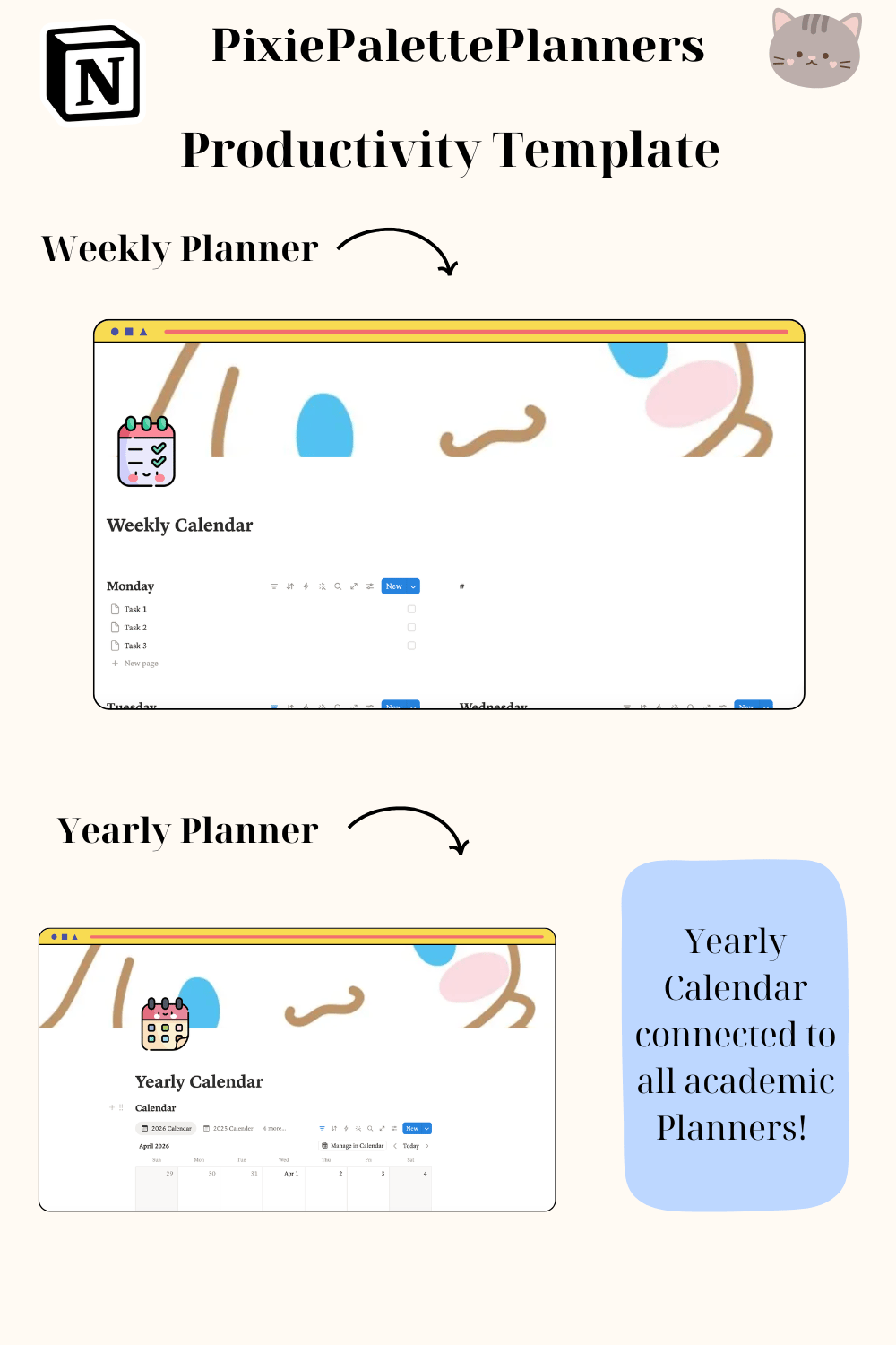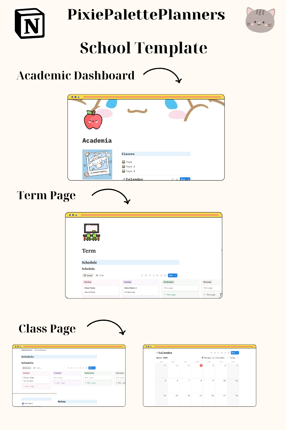 This Notion digital planner works seamlessly on your laptop, desktop, tablet, and phone — so your kawaii academic planner goes wherever you do!