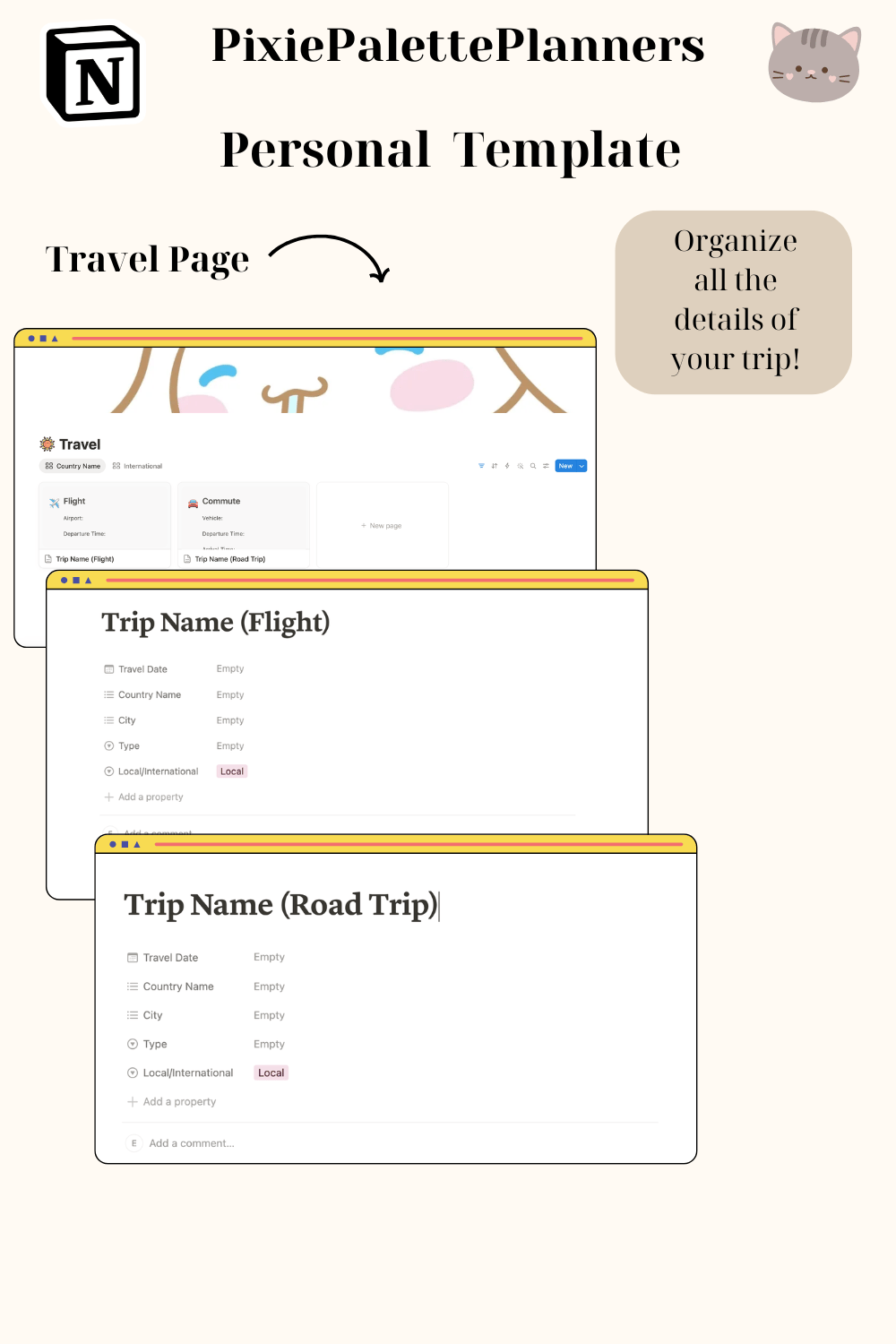 - Organize trips with an itinerary section, packing checklist, travel destinations, and restaurants
