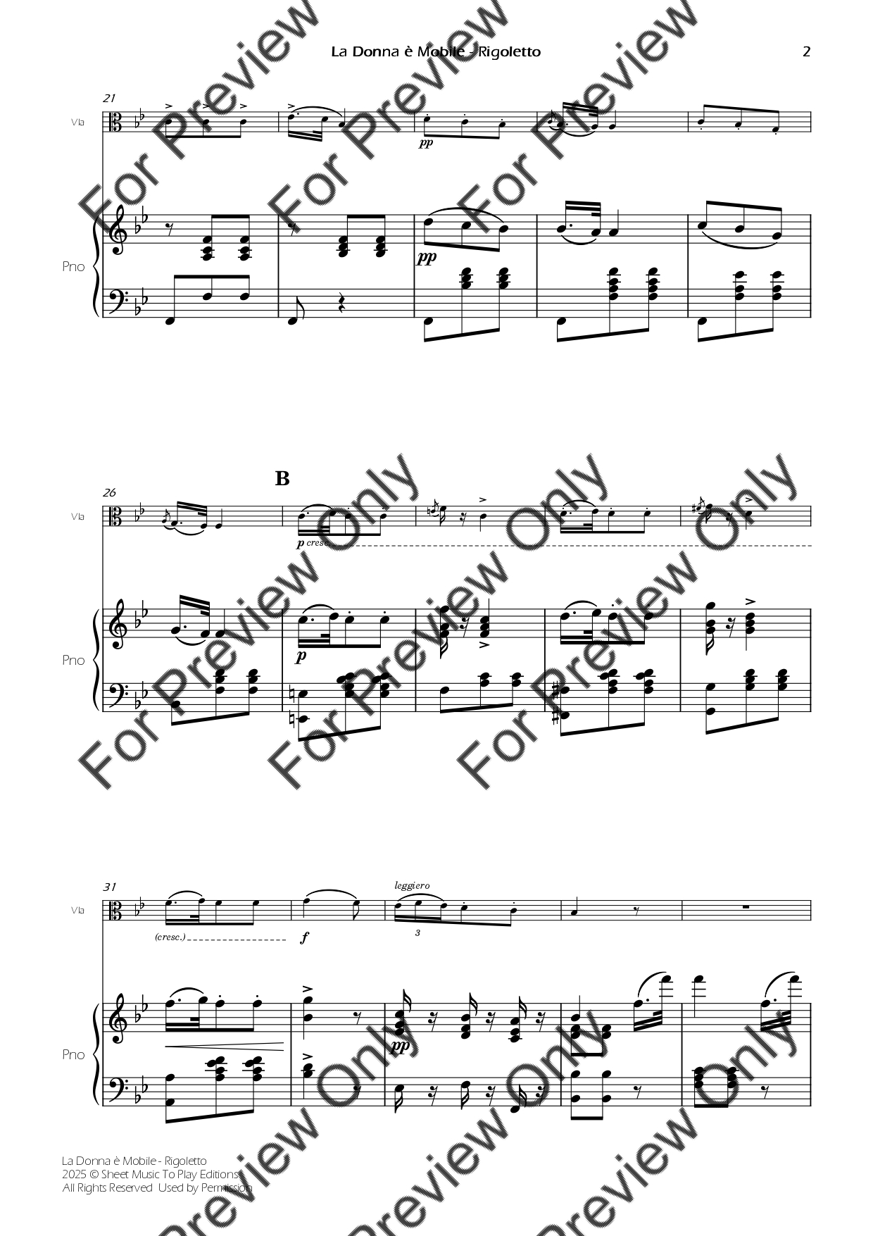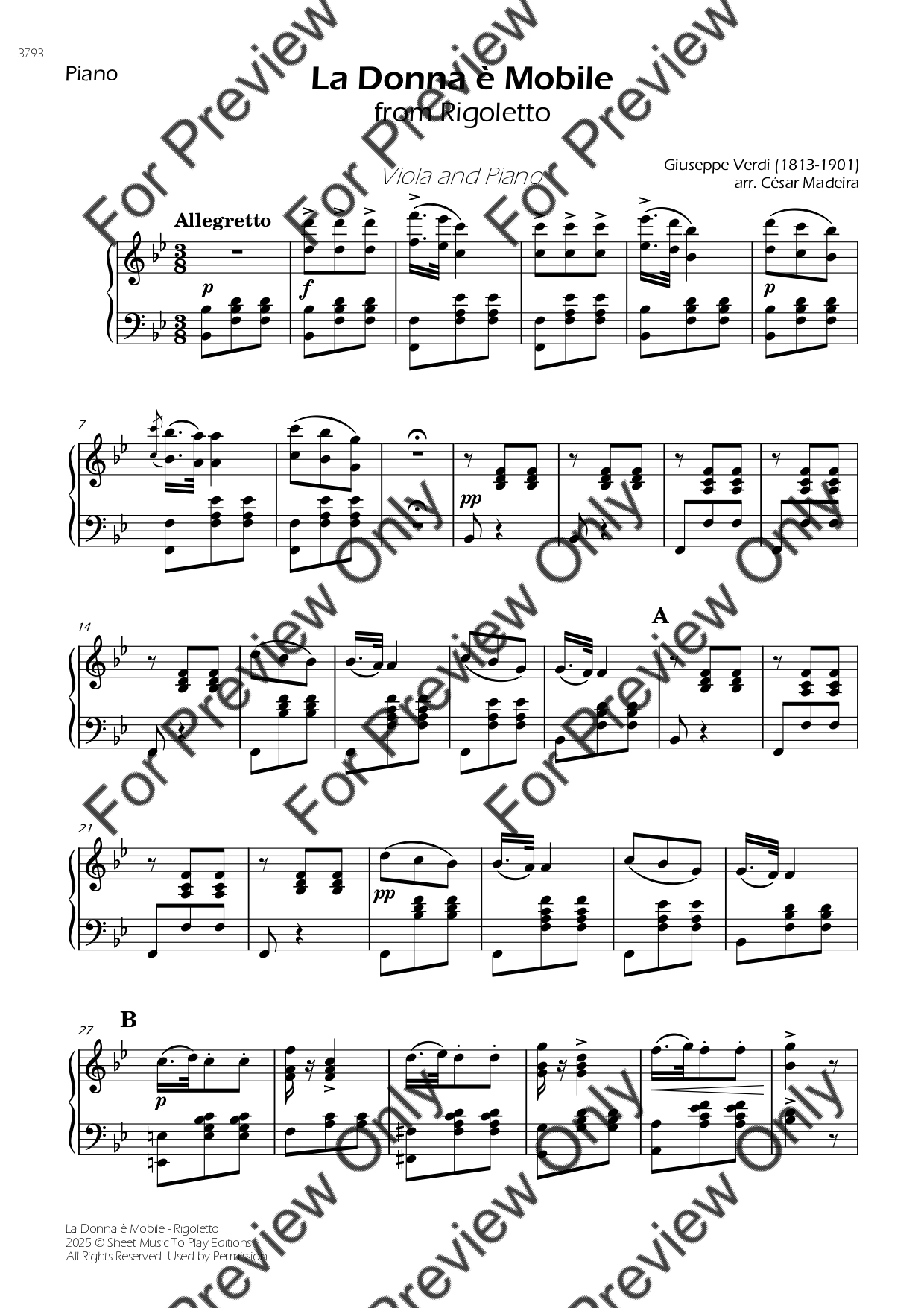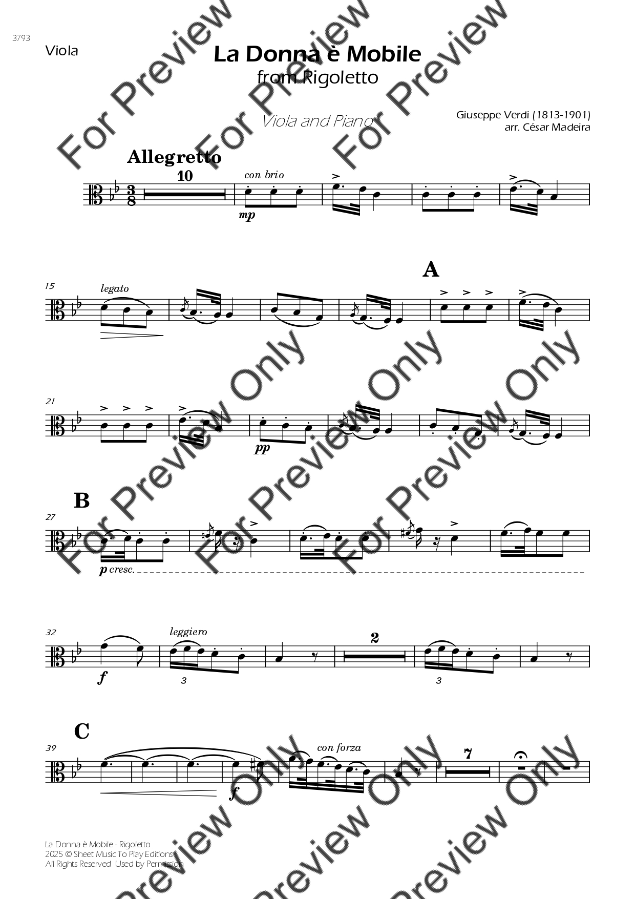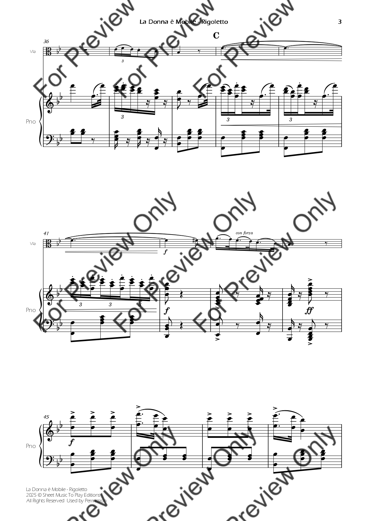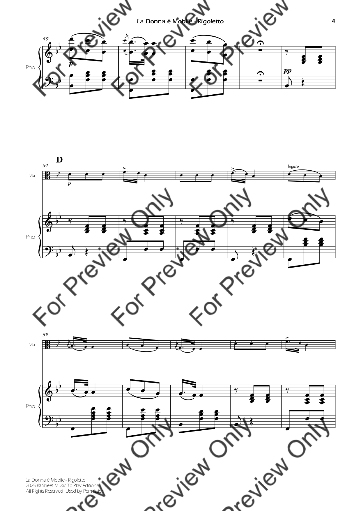 La Donna è Mobile from Rigoletto. Arrangement for Viola and Piano. With Full Score and Individual Parts. Enjoy it!