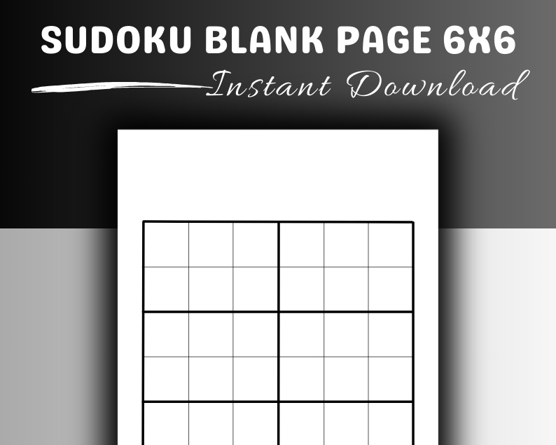 Sudoku Blank Page for 6x6 | Printable Pages | Instant Download PDF