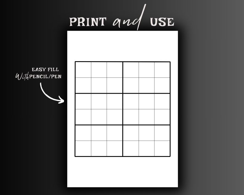 This Sudoku Blank Page for 6x6 grids is perfect for puzzle enthusiasts who enjoy solving and creating their own Sudoku challenges. The printable pages are designed to provide a clean and simple layout, making it easy to focus on the game. With two different versions included, you can switch between styles for variety or use them to create unique Sudoku puzzles for others. Available as an instant download in PDF format, these pages are convenient for printing at home or at your local print shop. Whether you are a beginner or a seasoned Sudoku player, these blank grids offer endless possibilities for fun and brain-teasing entertainment.