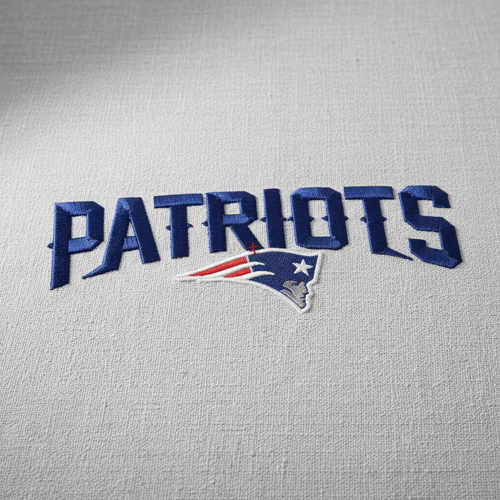 New England Patriots word logo embroidery design, professionally digitized in 2 colors for clean stitching and smooth machine performance. Ideal for American football embroidery projects, sports apparel, hats, jackets, and fan merchandise.