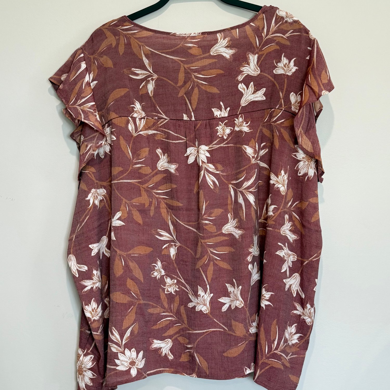 Como Blu mauve floral ruffle cap sleeve blouse - size 3x NWT!