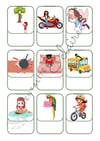 A l'intérieur se trouvent des cartes avec l'image et la phrase, d'autres seulement avec l'image et des étiquettes avec la phrase seule.