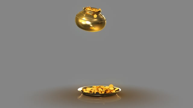 Golden coins falling out from pot