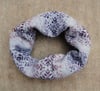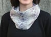 This tubular cowl features delicate colourwork inspired by the concentric pressed flower art by Jennie Ashmore. The colourwork pattern is similar, although not identical to, that found on the Ashmore sweater design. This design is part of my Organic Collection, a series of designs that are inspired by shapes found in the natural world and by artists who explore and celebrate nature in their own work.