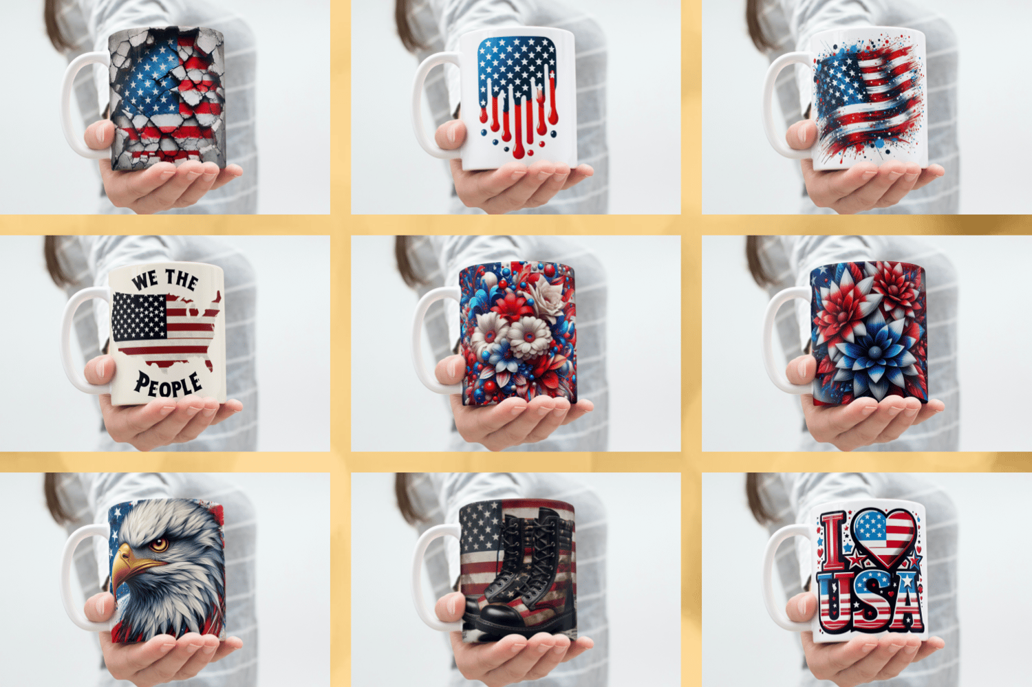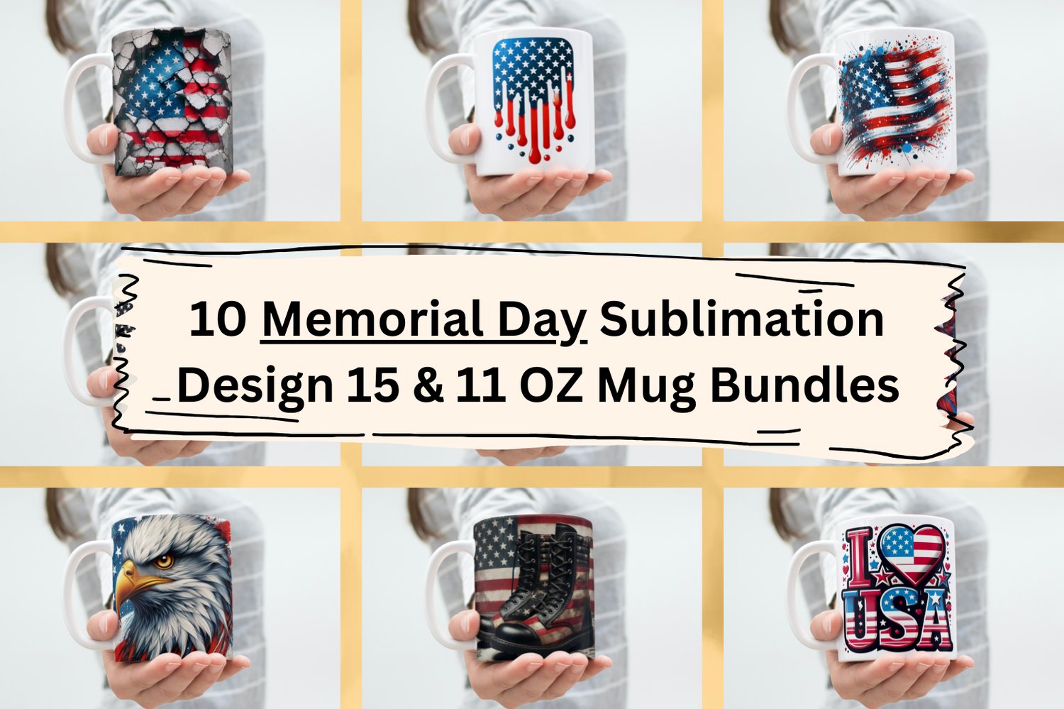 10 Memorial Day Sublimation Design Mug Bundle – Patriotic Coffee Mug Wraps