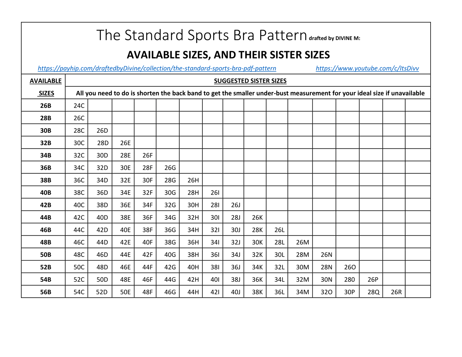 34E Standard Sports Bra Pattern DraftedbyDivine
