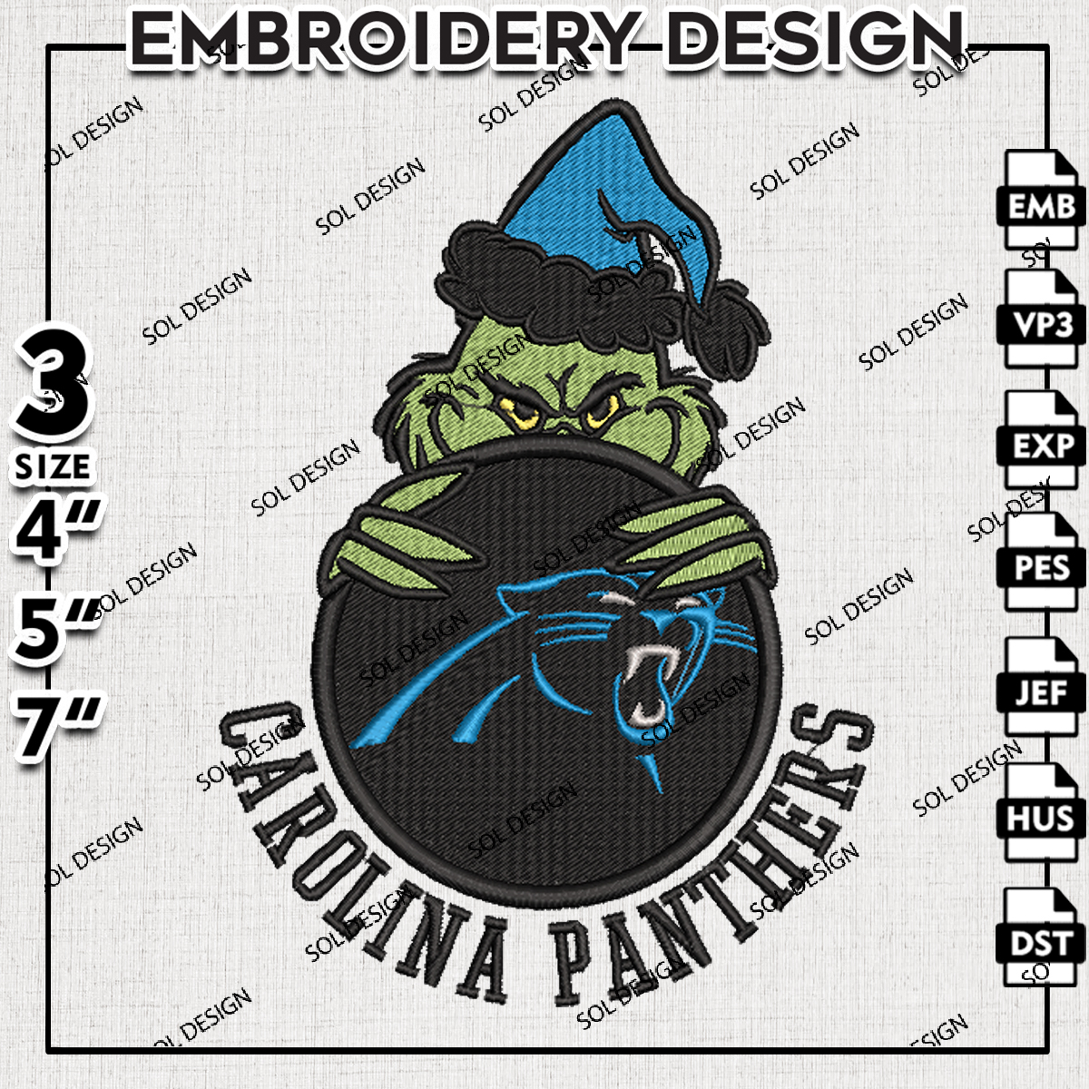 NFL Carolina Panthers Team x Grinch Face Holding Ornament Embroidery Designs, Grinch Embroidery Files, NFL Panthers Football Team Logo Embroidery, Merry Christmas Machine Embroidery Design, Digital Download