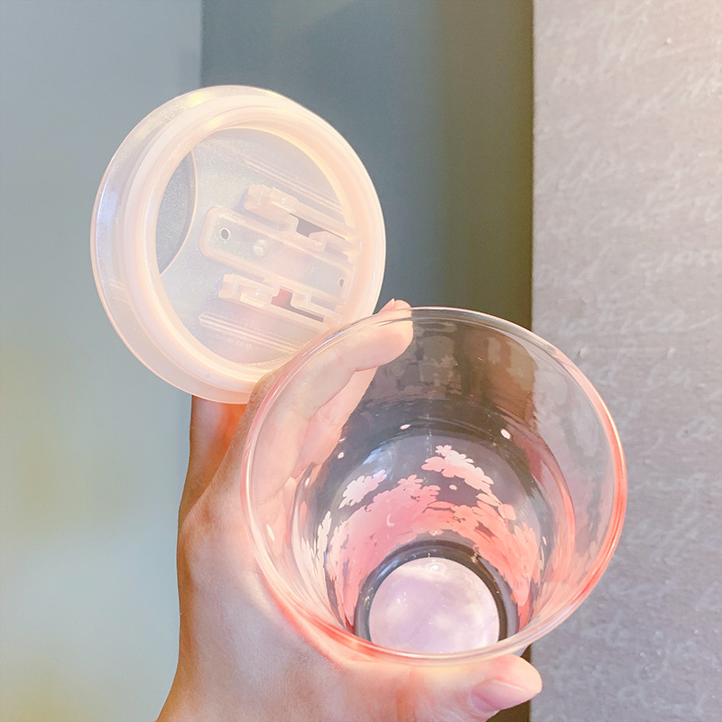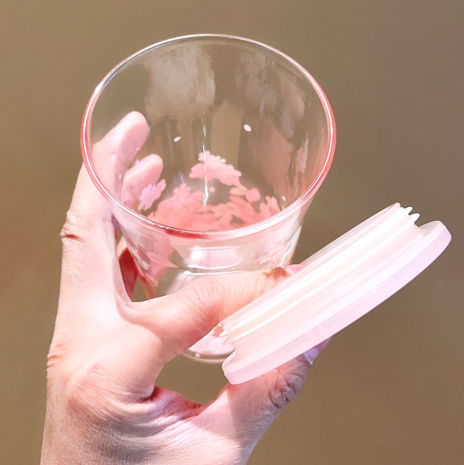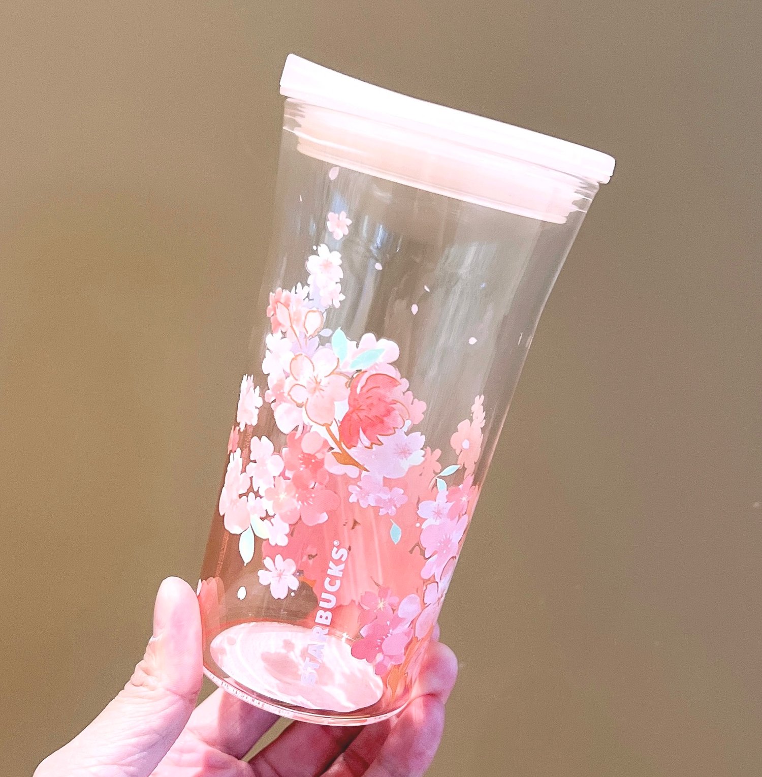 2022 Starbucks China Sakura Cherry Blossom 16oz Elegant Glass Cold Cup with Slide-open Lid