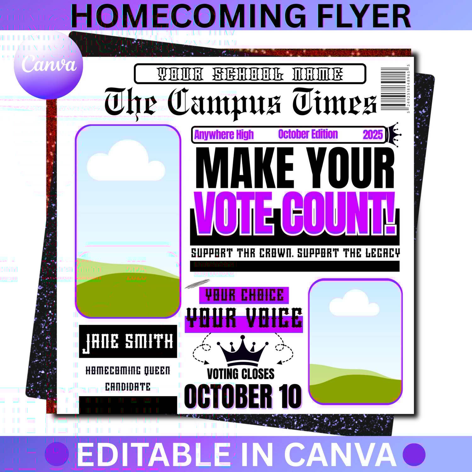 A Homecoming Flyer is a promotional graphic—either digital or printable—designed specifically to advertise homecoming-related events such as dances, football games, alumni reunions, campaigns for Homecoming King or Queen, or spirit-themed gatherings