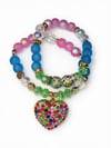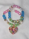 • Gold spacers + rainbow rhinestone ball + multicolored rhinestone heart pendant