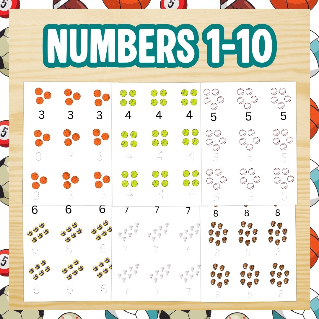 Sporty Number Tracing Worksheets 1-10 | Printable Preschool & Toddler Activities