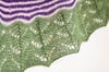 • Instructions for the main body are in written format only, the edging is both written and charted.• The Shawl can also be knit with two colours, where you use 100g of Fingering in the Main colour for the striping and lace edging along with a contrast colour for the striping portion only.