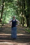 Tracie is a simple skirt with an elastic waistband and optional inseam pockets. There is enough elastic in the waistband to allow it to stretch without the skirt bunching or being overly full at the waist.