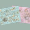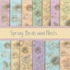 This set of papers features lots of bird's nests, spring flowers, birds, and butterflies. A few birds eggs feature, and even a bird cage. The backgrounds are pastels, with spring colors featuring prominently. While this set is perfect for Easter and springtime more broadly, it can be used for crafting at any time of year. It would be especially nice for making crafts connected with the arrival of a new baby. The pages are landscape orientation. This set may be used for junk journaling or scrapbooking, but also for decoupage or for making greeting cards.